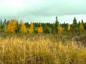 A little further down the road the tamarack trees and the dried grasses that they sprung up from splashed competing shades of golden yellow across the horizon. These suddenly shouted out over the wetlands as the sun peaked out from the fog and brought both sides of the highway to vibrant life. The rows of tamaracks against their evergreen neighbors looked like jagged, grinning jack-olantern teeth.
