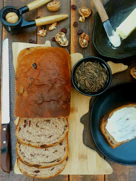 Another issue I have seen with wild rice is in cranberry wild rice bread. I have found that any rice that sticks out of the crust dries out and gets really hard while baking. I decided to try rolling out the dough, then sprinkling the rice on top and rolling it up jelly roll style to keep the rice inside. I don’t think I will make wild rice bread any other way ever again. The rice stayed nice and moist, and there was a pretty swirl inside each loaf. Whole-wheat style breads tend to be overly dense from too much flour. Whole wheat flour takes longer to rehydrate than white flour, so it is a common mistake to add too much flour while kneading. If you want soft, squishy bread that is perfect for leftover holiday turkey sandwiches, don’t be afraid to leave your dough a bit sticky. This bread would also be great for making holiday dressing/stuffing. If desired, you can use sunflower seeds or pepitas in place of walnuts, and you can add 1-2 teaspoons of minced fresh rosemary for extra flavor.