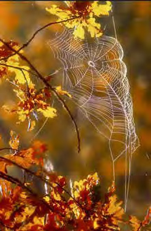 A lone strand less than half way across the spiderweb dangles a single yellow faded popple leaf. Each strand frost covered to where they almost appear the size of sewing thread.