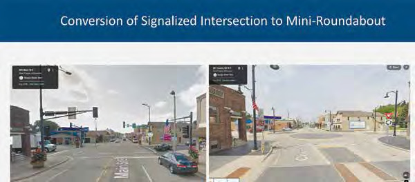 MnDOT in turn conducted an intersection control evaluation, studying options and ultimately recommending to “replace the two signal systems with mini roundabouts.”
