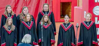 CHOIR MEMBERS (front l-r): Kenzee Jauhola, Lindsay Israel, Elya Perkins, Manoline Dumesnil, Chezne Nickolson; back: Teagan Ihnen, Aspen MacCoy, Riley Nielsen