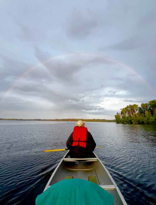 But after putting my car in park and carefully lifting the canoe from the top of my car to the edge of the water, the sky cleared. Perched at the end of the dock, my dad and I looked out at a brilliantly vibrant rainbow stretching across the lake. I giggled with anticipation and hugged him. “This is going to be wonderful.”