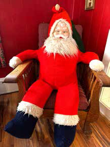You never know what you’ll find when you’re out picking for antiques. My friend recently showed me this vintage life-sized stuffed Santa Claus and made me a buy-it-today offer I couldn’t refuse. Now he’s sitting in my Grandma’s old mechanical reclining chair, waiting for cookies. His plastic side-eye, grinning face, is simultaneously creepy and endearing. His beard is epic and the color of his suit is bright and tight.