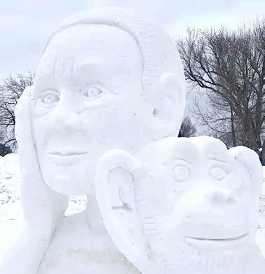 Although the snow sculptures have lost their freshness, a familiar winter still exists, trumpeter swans are beginning to return, bald eagles are nesting, and evening grosbeaks are ravenously seeking available food along with other wildlife.