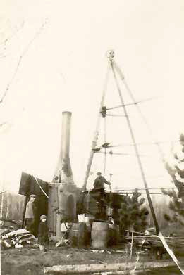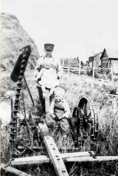 Until a working farm could be established, income had to be generated to pay for the improvements to the property. Balsam was fifteen miles from the nearest mine. Transportation being what it was, daily travel to work in the Hawkins Mine near Nashwauk was impractical at best, impossible at worst. Edwin (having changed the Scandinavian “v” to “w” by this time) had fortunately been apprenticed as a blacksmith. One of the first buildings to be built was a blacksmith shop. From here he earned money by shoeing horses, smithing tools for himself and to be sold, fabricating sled runners and barrel stoves and making repairs on farm equipment for the neighboring farms. Being the only blacksmith for many miles in any direction, he had plenty of customers. He also worked at times with an exploratory company that sample drilled for new iron ore deposits.
