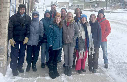 Jess Edberg, executive director of the Dorothy Molter Museum, symbolically led a walking tour of the historic buildings in the Ely Commercial District; due to the blizzard, the presentation was held in the warmth of the Greenstone Theater instead.