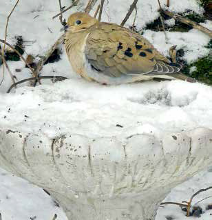 April 8 – On a trip off Highway 53 through the wetlands leading into Virginia, a pair of trumpeter swans were nestled together on snow-covered ice with snow falling around them. Pairs usually nest successfully each summer on the wetlands in this area.