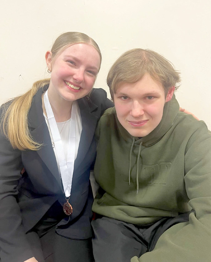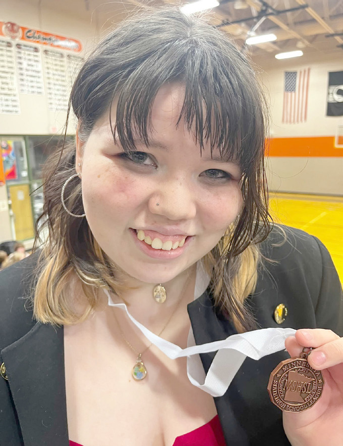 The Northeast Range speech team had a very successful Section 7A tournament. NER tied for overall third place. All speakers on the team placed in the top 10 and five speakers moved on to state: Storytelling first Eva Morgan and third Alice Sopoci; Prose second Addyson Monson; Ext Reading third Makenzie Little; Creative third Alison Poppler; Drama ninth Brody Lindquist; Informative fourth Trevor Zaitz.
